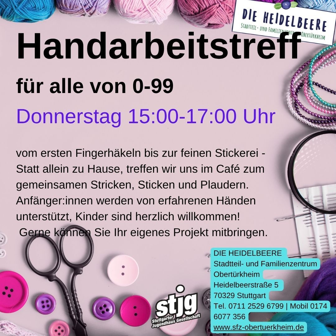 offenes Angebot für alle von 0-99 Jahren - ob erstes Fingerhäkeln oder feine Stickerei für alle ist etwas dabei.