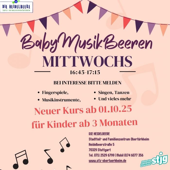 Neuer Kurs ab Oktober 2025 - für Kids ab 3 Monaten. Fingerspiele, Singen und Tanzen, Musikinstrumente entdecken